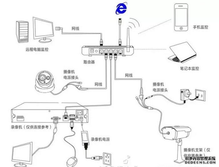 假設(shè)四臺(tái)攝像機(jī)到監(jiān)控距離少于40米,每臺(tái)攝像機(jī)可單獨(dú)布RVV2×0.5電源線到監(jiān)控主機(jī)并用小型開(kāi)關(guān)電源供電;如果4個(gè)半球或者槍機(jī),也可以選擇2個(gè)12V1A電源或者1個(gè)12V2A電源,4個(gè)攝像機(jī)采用并聯(lián)取電的方式,比較節(jié)省線材;